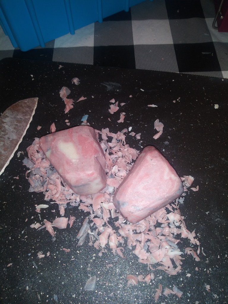 Having recently received my newest “earthy” colorants (oxides and a couple of tan/brown colors), I figured this would be a pretty simple challenge as long as I was able to get the colors right. My biggest concern is that I’m not a sculptor, and I don’t have a rock mold. So in my mind, if this failed, it would be because I’m not an artist. I still felt more confident about this option, however, so I went for it as well.