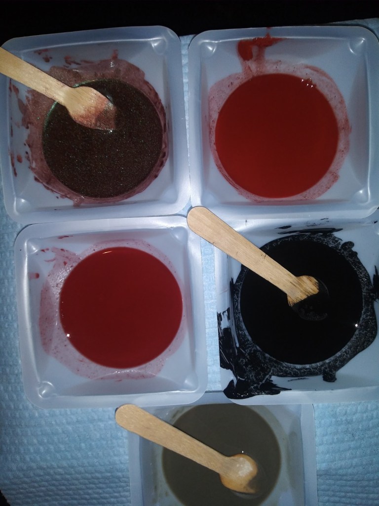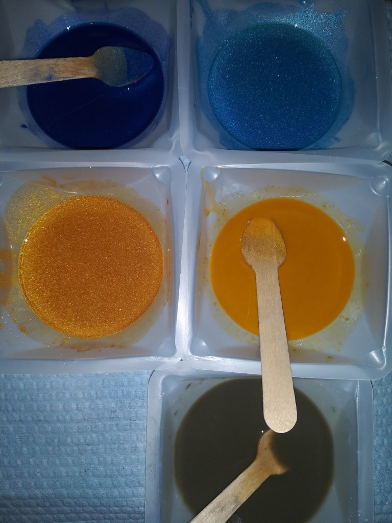 Because I was so excited to try these techniques and play around with the colors, I made all 3 batches at once. It took longer to get to the point of soaping which allowed me to set up all of my colors, however, it was a much faster process than I realized I wanted.